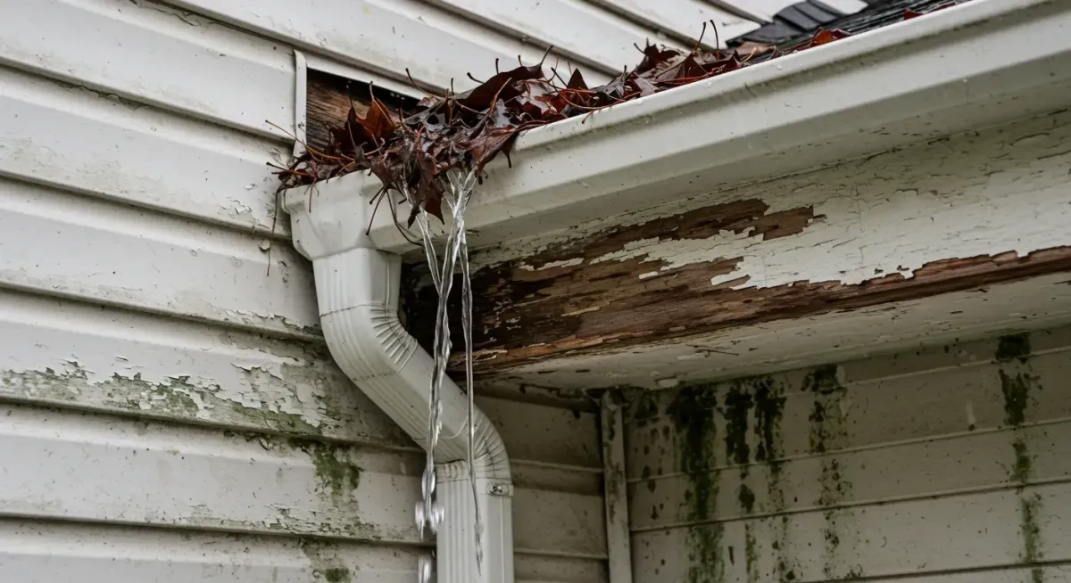 This is typically due to clogs from leaves and debris, improper slope, cracks, or separated seams, preventing water from being channeled away from the home's exterior.
