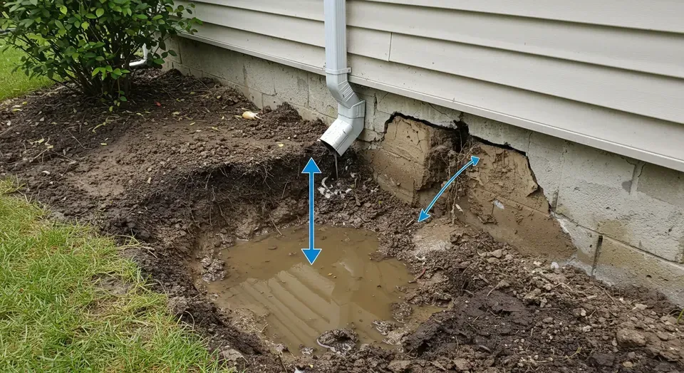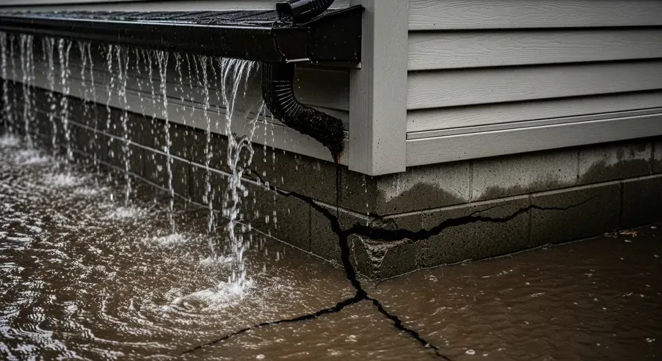 The creation of intense hydrostatic pressure. As overflowing gutters and poorly placed downspouts dump massive volumes of water directly at the base of the house, the surrounding soil becomes super-saturated. The immense weight and pressure of this water forces its way through any available weakness in the foundation—such as cracks, the joint where the walls meet the floor (cove joint), or porous concrete—leading to active water infiltration.